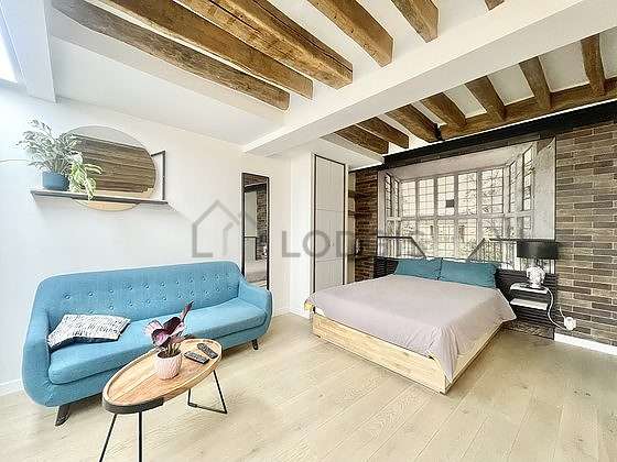 Living roomThis apartment consists of a living room with wooden floor and its double-glazed windows. This living room is furnished and equipped for a comfortable stay: tv, sofa, coffee table.
