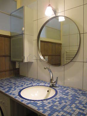This apartment is equipped with a pleasant bathroom. This bathroom is furnished with all the equipment you need for a comfortable stay: bath towels, cupboard, bath tub, hair-dryer, towel drying radiator. The toilets are separated from the bathroom and located in an independant room.