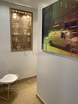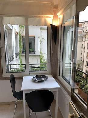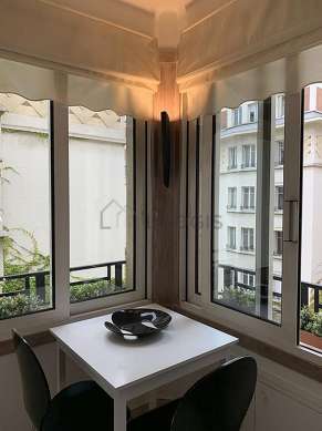 This apartment consists of a living room with coco floor and its windows and view on courtyard. This very quiet living room is furnished and equipped for a comfortable stay: tv, linen, 1 armchair(s), dining table, wardrobe, storage space, cupboard, 1 chair(s)1 sofabed(s) of 140cm.