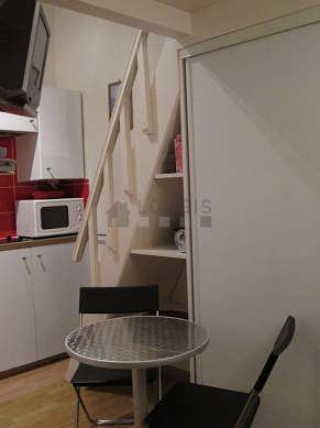 Living roomThis apartment consists of a charming living room with wooden floor. This very quiet living room is furnished and equipped for a comfortable stay: tv, dining table, wardrobe, shelves, cupboard, 2 chair(s)1 mattress of 140cm, 1 sofabed(s) of 140cm.