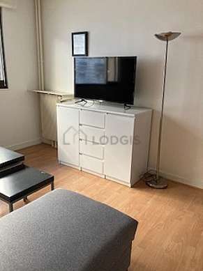 This apartment consists of a pleasant living room with wooden floor and its double-glazed windows and view on road. This quiet living room is furnished and equipped for a comfortable stay: tv, quilt, coffee table, wardrobe, shelves, storage space1 futon(s) of 140cm, 1 bed(s) of 160cm.