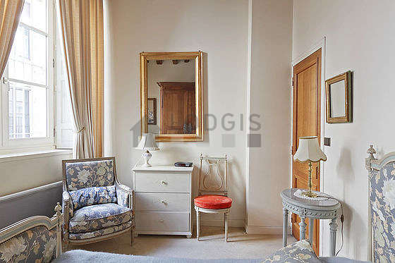 With a carpeting floor and its double-glazed windows and view on road, this charming room offre provides the necessary equipment for you to serenely rest during your stay: linen, 2 armchair(s), wardrobe, storage space, cupboard, 1 chair(s), bedside table1 bed(s) of 140cm.