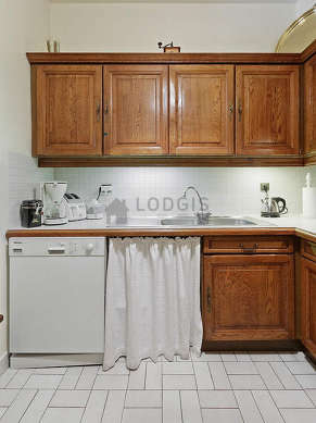 This apartment is equipped with a bathroom. This bathroom is furnished with all the equipment you need for a comfortable stay: bath towels, cupboard, bath tub, hair-dryer, towel drying radiator. The toilets are separated from the bathroom and located in an independant room.
