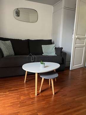 This apartment consists of a charming living room with wooden floor and its double-glazed windows and view on courtyard. This very quiet living room is furnished and equipped for a comfortable stay: tv, linen, quilt, dining table, coffee table, wardrobe, shelves, cupboard, 2 chair(s)1 pullout bed(s) of 90cm, 1 bed(s) of 90cm.