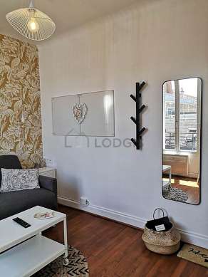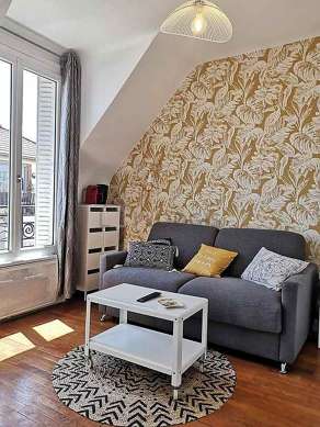 This apartment consists of a living room with wooden floor and its double-glazed windows. This quiet living room is furnished and equipped for a comfortable stay: tv, linen, quilt, dining table, coffee table, wardrobe, shelves, 2 chair(s)1 sofabed(s) of 140cm.