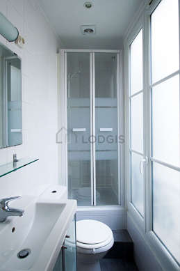 This apartment consists of a pleasant living room with wooden floor and its double-glazed windows and view on courtyard. This very quiet living room is furnished and equipped for a comfortable stay: tv, dining table, coffee table, shelves, 4 chair(s)1 sofabed(s) of 140cm.