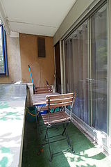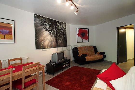 This apartment consists of a charming living room with tile floor and its double-glazed windows with balcony and view on garden. This quiet living room is furnished and equipped for a comfortable stay: tv, linen, quilt, dining table, wardrobe, shelves, storage space, cupboard, 4 chair(s), bedside table2 sofabed(s) of 120cm.