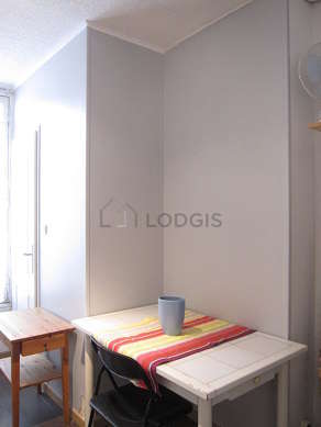 This apartment consists of a attractive living room with wooden floor and its double-glazed windows and view on courtyard. This very quiet living room is furnished and equipped for a comfortable stay: tv, linen, quilt, dining table, shelves, 2 chair(s)1 sofabed(s) of 140cm.