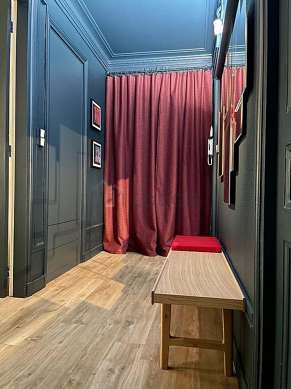 This apartment consists of a living room its double-glazed windows. This living room is furnished and equipped for a comfortable stay: home cinema, tv, 1 armchair(s), tv stand.