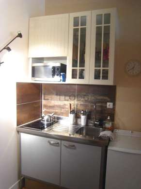 This apartment consists of a attractive living room with wooden floor and its double-glazed windows and view on courtyard. This very quiet living room is furnished and equipped for a comfortable stay: tv, linen, quilt, dining table, coffee table, closet, storage space, 2 chair(s), stool1 bed(s) of 90cm, 1 bed(s) of 140cm.