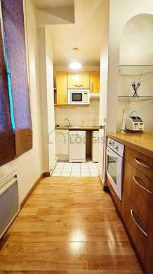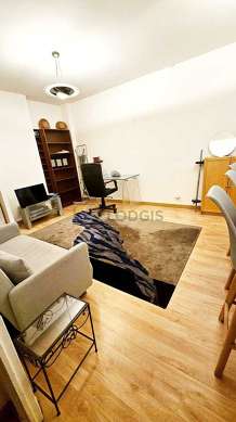 Living roomThis apartment consists of a fabulous living room with wooden floor and its windows and view on courtyard. This very quiet living room is furnished and equipped for a comfortable stay: tv, sofa, 2 armchair(s), wardrobe, shelves, cupboard.
