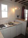 This apartment consists of a living room with wooden floor and its double-glazed windows and view on courtyard. This very quiet living room is furnished and equipped for a comfortable stay: tv, linen, quilt, 2 armchair(s), coffee table, bookcase, closet, storage space, bedside table1 futon(s) of 140cm, 1 loft bed(s) of 140cm.