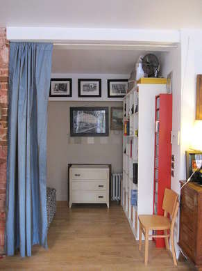 Close to the living room, this apartment offers you alcove. Equipped with linen, quilt, bookcase, shelves, storage space, exposed bricks, bedside table, this alcove is real room for your stay.