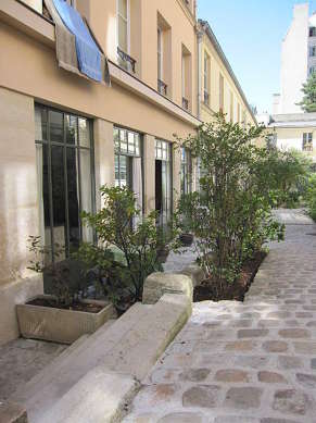 This apartment consists of a living room with wooden floor and its windows and view on courtyard. This very quiet living room is furnished and equipped for a comfortable stay: tv, linen, quilt, coffee table, storage space, exposed bricks2 sofabed(s) of 140cm.