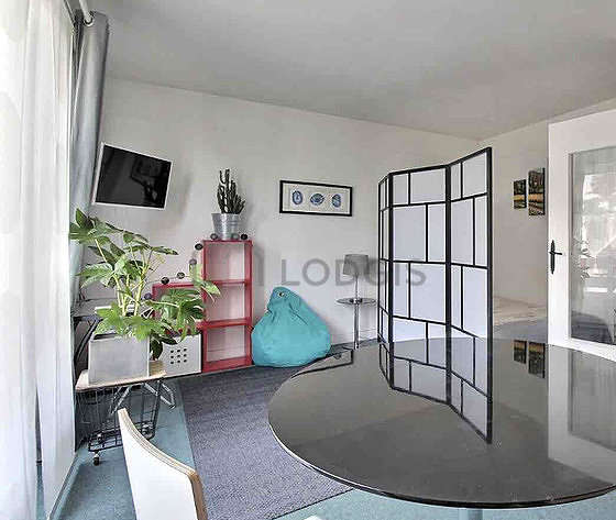 Living roomThis apartment consists of a living room with a carpeting floor and its windows with balcony and view on road. This quiet living room is furnished and equipped for a comfortable stay: tv, dining table, desk, sideboard, 4 chair(s), bedside table1 sofabed(s) of 140cm.