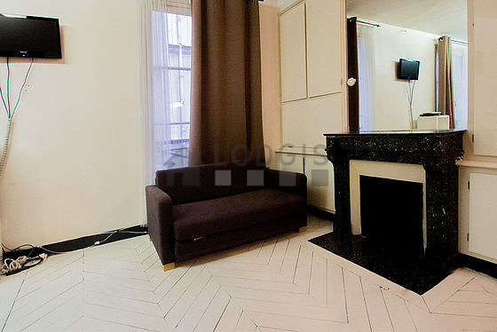 Living roomThis apartment consists of a living room with wooden floor and its windows and view on courtyard. This very quiet living room is furnished and equipped for a comfortable stay: tv, linen, quilt, sofa, dining table, shelves, cupboard, fireplace1 sofabed(s) of 140cm.