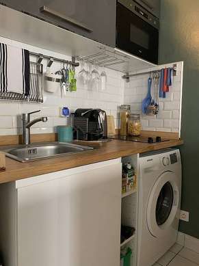 This apartment consists of a attractive living room with tile floor and its double-glazed windows and view on courtyard. This quiet living room is furnished and equipped for a comfortable stay: tv, linen, quilt1 sofabed(s) of 140cm.