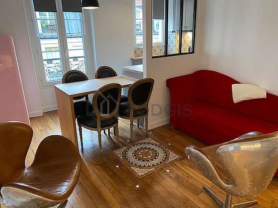 This apartment consists of a wonderful living room with wooden floor and its double-glazed windows and view on road. This quiet living room is furnished and equipped for a comfortable stay: tv, dining table, cupboard, 4 chair(s)1 sofabed(s) of 140cm.