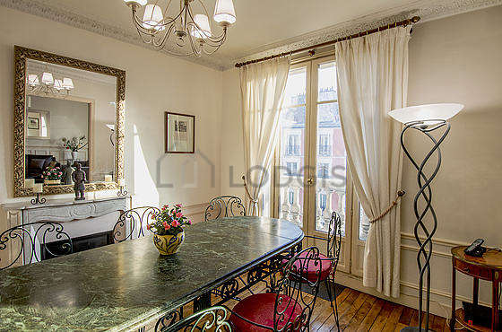 In order to share your meals in a convivial atmosphere during your stay parisian, this apartment offers a great dining room that can welcome up to 8 guests thanks to its dining table, fireplace, 8 chair(s).