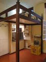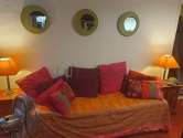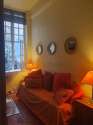 This apartment consists of a living room with tile floor and its windows and view on courtyard. This quiet living room is furnished and equipped for a comfortable stay: tv, linen, quilt, dining table, 2 chair(s)1 sofabed(s) of 120cm, 1 loft bed(s) of 140cm.