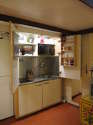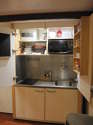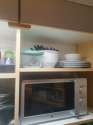 This apartment consists of kitchen with tile floor and all the necessary equipment for your daily life: hob, refrigerator, microwave oven, freezer, toaster, kettle, coffee-maker, cupboard, crockery.
