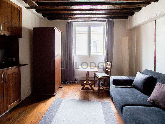 This apartment consists of a pleasant living room with wooden floor and its double-glazed windows and view on road. This living room is furnished and equipped for a comfortable stay: tv, linen, quilt, dining table, coffee table, 2 chair(s), bedside table1 sofabed(s) of 140cm.