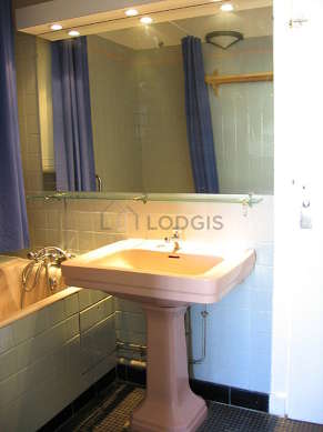 This apartment is equipped with a bathroom. This bathroom is furnished with all the equipment you need for a comfortable stay: bath towels, cupboard, bath tub. The toilets are separated from the bathroom and located in an independant room.