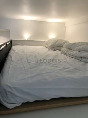 This apartment consists of a attractive living room with concrete floor and its double-glazed windows and view on courtyard. This very quiet living room is furnished and equipped for a comfortable stay: sofa, desk, wardrobe, shelves, cupboard, stool1 loft bed(s) of 140cm.