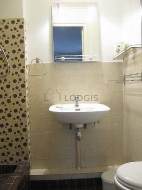 This apartment consists of a charming living room with wooden floor and its windows and view on road. This quiet living room is furnished and equipped for a comfortable stay: tv, linen, quilt, 2 armchair(s), dining table, coffee table, wardrobe, shelves, storage space, sideboard, cupboard, 3 chair(s), bedside table1 sofabed(s) of 140cm.