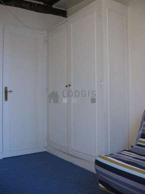 Living roomThis apartment consists of a living room with a carpeting floor and its windows and view on courtyard. This very quiet living room is furnished and equipped for a comfortable stay: linen, quilt, dining table, wardrobe, shelves, cupboard, 2 chair(s)1 sofabed(s) of 140cm.
