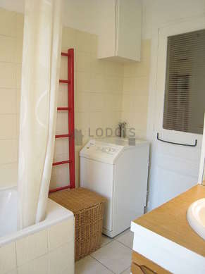 This apartment is equipped with a pleasant bathroom and bright with windows. This bathroom is furnished with all the equipment you need for a comfortable stay: bath towels, shelves, cupboard, bath tub. The toilets are separated from the bathroom and located in an independant room.