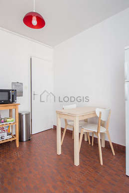 In order to share your meals in a convivial atmosphere during your stay in Paris, this apartment offers a pleasant dining room that can welcome up to 4 guests thanks to its desk, bookcase, shelves, 5 chair(s).