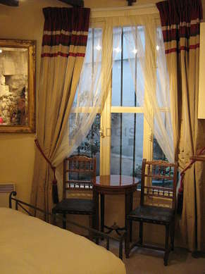 Living roomThis apartment consists of a charming living room with tile floor and its windows. This quiet living room is furnished and equipped for a comfortable stay: tv, linen, quilt, 1 armchair(s), dining table, desk, wardrobe, cupboard, exposed bricks1 bed(s) of 140cm.