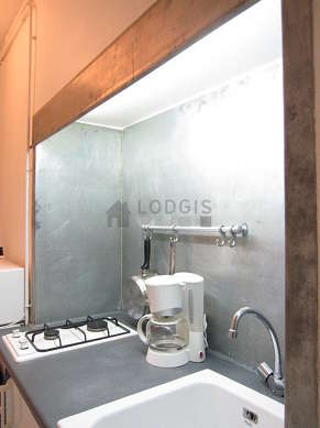 This apartment consists of a living room with wooden floor and its double-glazed windows and view on courtyard. This quiet living room is furnished and equipped for a comfortable stay: tv, linen, quilt, desk, wardrobe, shelves, storage space, cupboard, 1 chair(s)1 sofabed(s) of 140cm.