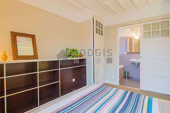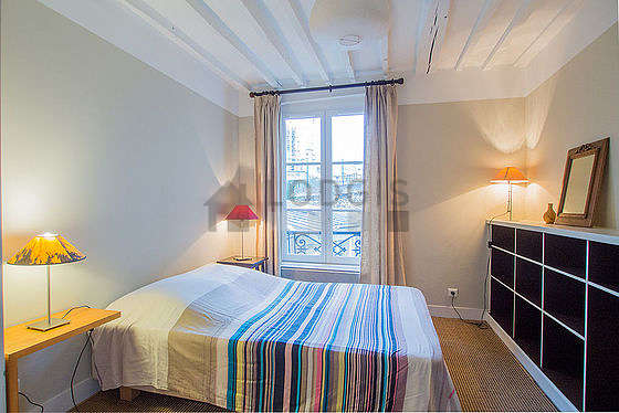 This apartment consists of a pleasant living room with wooden floor and its double-glazed windows and view on courtyard. This quiet living room is furnished and equipped for a comfortable stay: sofa, 2 armchair(s), dining table, sideboard, cupboard, 4 chair(s).