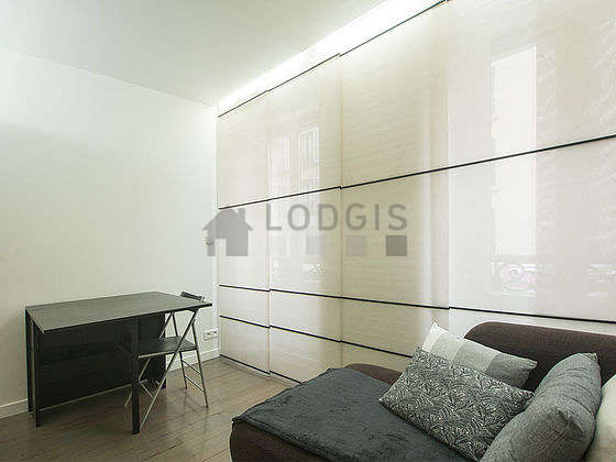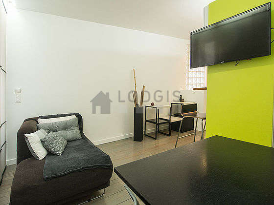 This apartment consists of a beautiful living room with wooden floor and its double-glazed windows and view on road. This quiet living room is furnished and equipped for a comfortable stay: tv, sofa, dining table, coffee table, 4 chair(s).