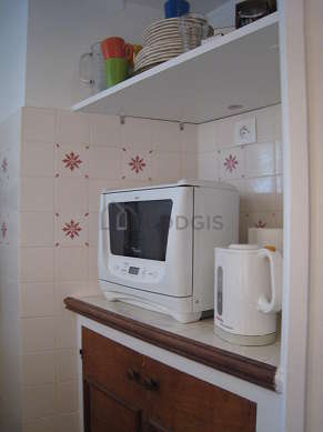 This apartment consists of beautiful kitchen with tile floor and all the essential equipment for your daily life: hob, refrigerator, microwave oven, freezer, extractor hood, toaster, kettle, coffee-maker, shelves, cupboard, crockery.