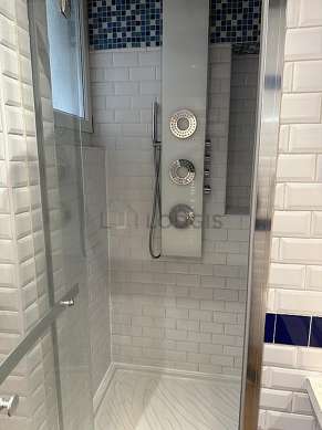 This apartment is equipped with a great bathroom and bright with windows. This bathroom is furnished with all the equipment you need for a comfortable stay: bath towels, shelves, cupboard, hair-dryer, jet shower, towel drying radiator. The toilets are separated from the bathroom and located in an independant room.