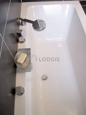This apartment is equipped with a great bathroom and bright with windows. This bathroom is furnished with all the equipment you need for a comfortable stay: bath towels, cupboard, bath tub, towel drying radiator. The toilets are separated from the bathroom and located in an independant room.