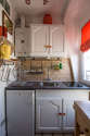 This apartment consists of beautiful kitchen close to the living room with tile floor and all the necessary equipment for your daily life: hob, refrigerator, combined microwave oven, toaster, kettle, coffee-maker, cupboard, crockery.