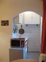 This apartment consists of beautiful kitchen with tile floor and all the necessary equipment for your daily life: hob, refrigerator, oven, combined microwave oven, freezer, toaster, kettle, coffee-maker, dining table, cupboard.
