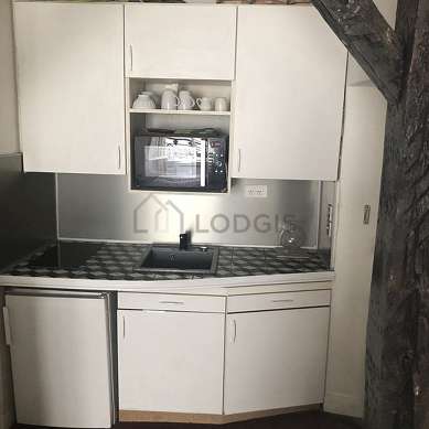 This apartment consists of kitchen with a floor tiles floor and all the necessary equipment for your daily life: hob, refrigerator, oven, freezer, toaster, coffee-maker, shelves, cupboard, crockery.