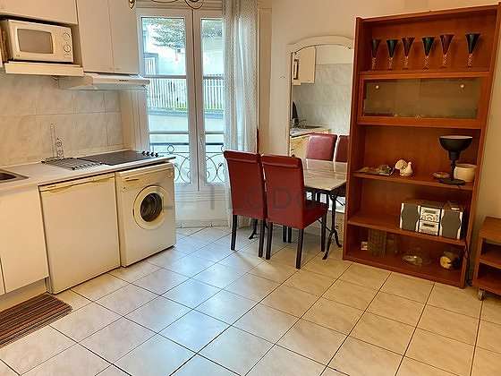 Living roomThis apartment consists of a pleasant living room with tile floor and its windows and view on courtyard. This quiet living room is furnished and equipped for a comfortable stay: tv, linen, quilt, dining table, coffee table, wardrobe, shelves, cupboard, 4 chair(s)1 sofabed(s) of 140cm.