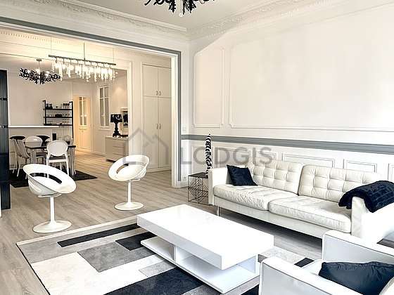 In order to share your meals in a convivial atmosphere during your stay in Paris, this apartment offers a great dining room that can welcome up to 8 guests thanks to its dining table, shelves, sideboard, 8 chair(s).