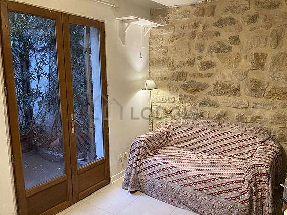 This apartment consists of a charming living room with tile floor and its double-glazed windows and view on courtyard. This very quiet living room is furnished and equipped for a comfortable stay: linen, quilt, refrigerator, sofa, dining table, desk, wardrobe, shelves, cupboard, crockery, 3 chair(s), stool, airer, floor lamp, mirror, coat stand, bin1 bed(s) of 140cm.