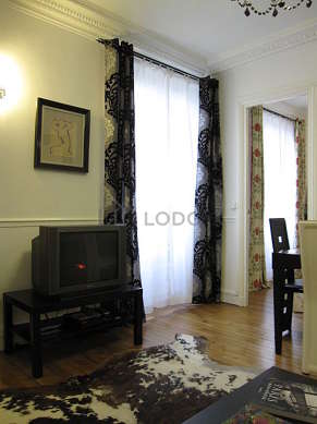 This apartment consists of a beautiful living room with wooden floor and its double-glazed windows and view on courtyard. This very quiet living room is furnished and equipped for a comfortable stay: tv, linen, quilt, dining table, coffee table, 4 chair(s)1 sofabed(s) of 140cm.