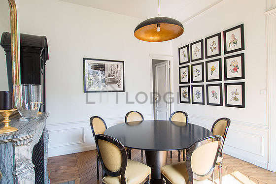 In order to share your meals in a convivial atmosphere during your stay parisian, this apartment offers a pleasant dining room that can welcome up to 9 guests thanks to its dining table, sideboard, crockery, 9 chair(s).