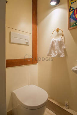 This apartment is equipped with a pleasant bathroom and bright with windows. This bathroom is furnished with all the equipment you need for a comfortable stay: bath towels, cupboard, bath tub, hair-dryer. The toilets are separated from the bathroom and located in an independant room.