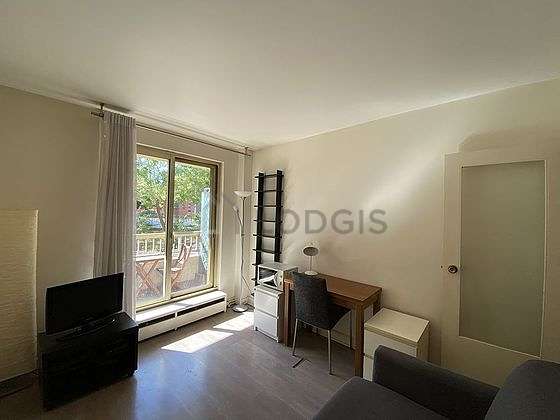 This apartment consists of a attractive living room with wooden floor and its double-glazed windows with balcony and view on garden. This quiet living room is furnished and equipped for a comfortable stay: tv, linen, quilt, dining table, wardrobe, shelves, cupboard, 4 chair(s)1 sofabed(s) of 140cm.