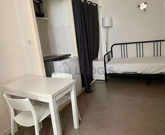 Living roomThis apartment consists of a living room its windows. This living room is furnished and equipped for a comfortable stay: dining table, desk, 1 chair(s)1 bed(s) of 90cm.